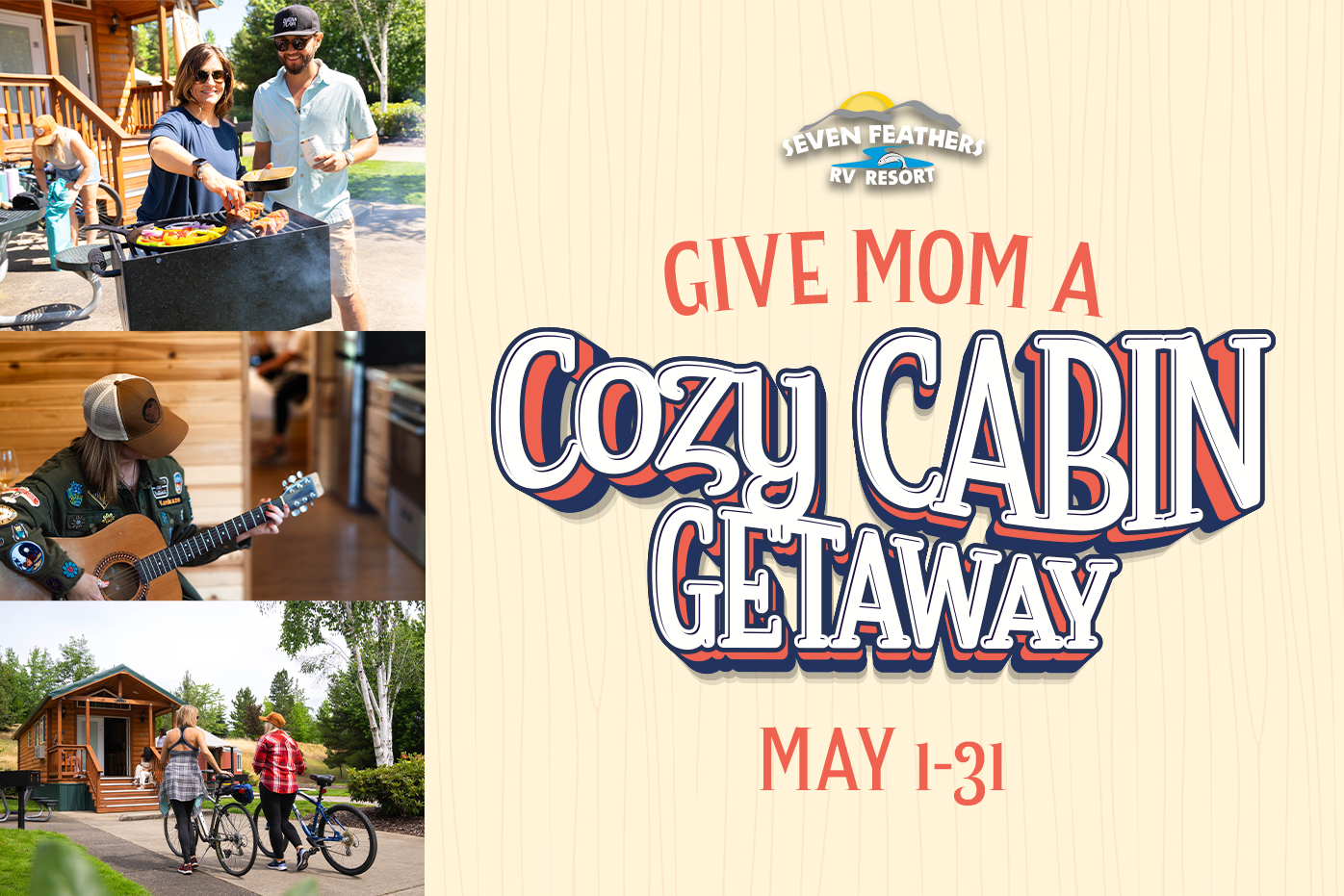 From May 1 through May 31, enjoy this special cabin package! Get Mom a cabin retreat and more with this terrific package.